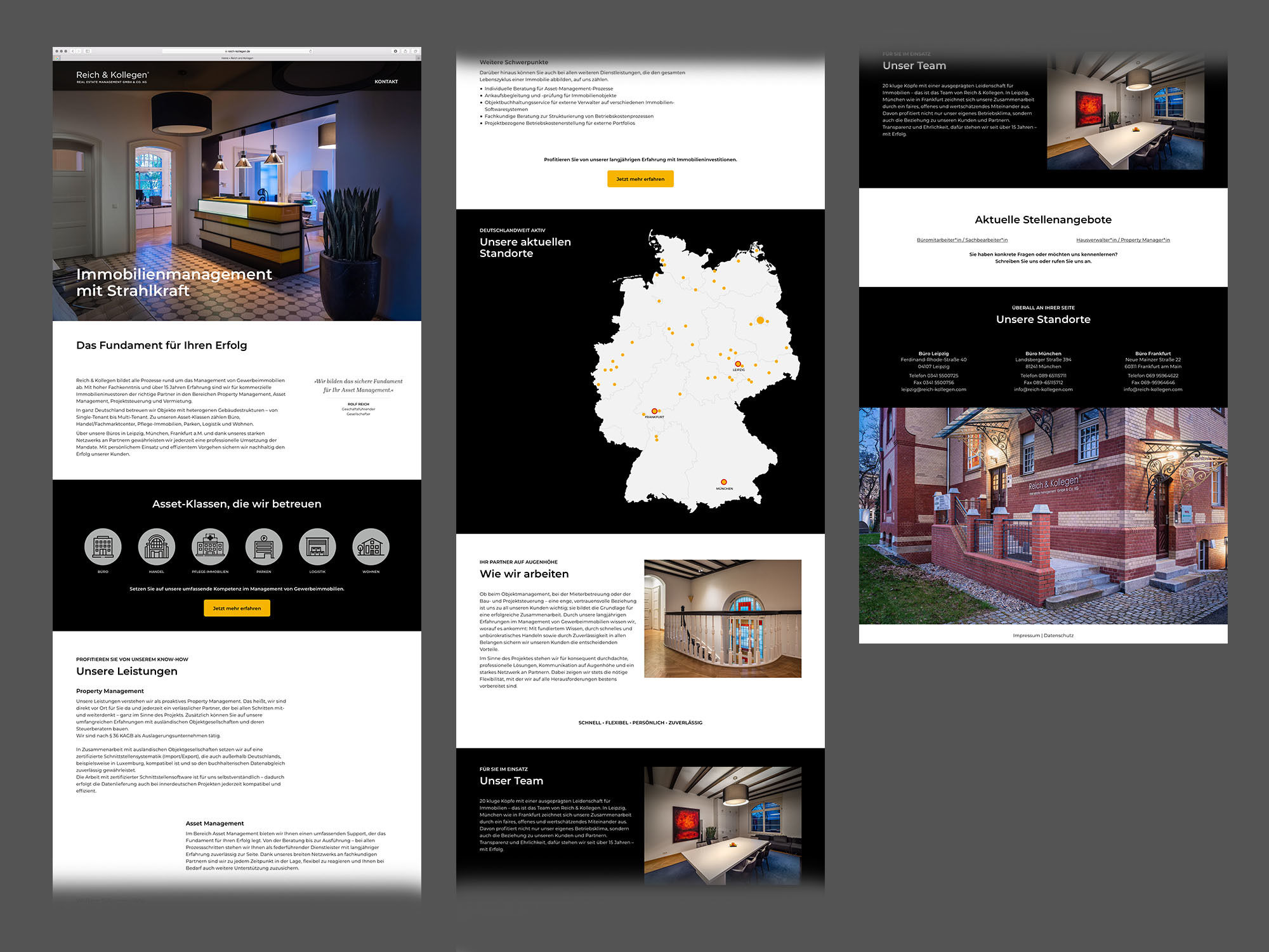 Ein Unternehmen bei der Neuaufstellung von Anfang an zu begleiten, ist immer spannend, da ergebnisoffen. Das Immobilienmanagement von Reich & Kollegen haben wir in einem intensiven Markenworkshop genauer unter die Lupe genommen. Fragen über Fragen, durch die wir den Relaunch der Website inhaltlich wie gestalterisch auf ein stabiles Fundament setzen konnten. Darauf lässt sich bauen.